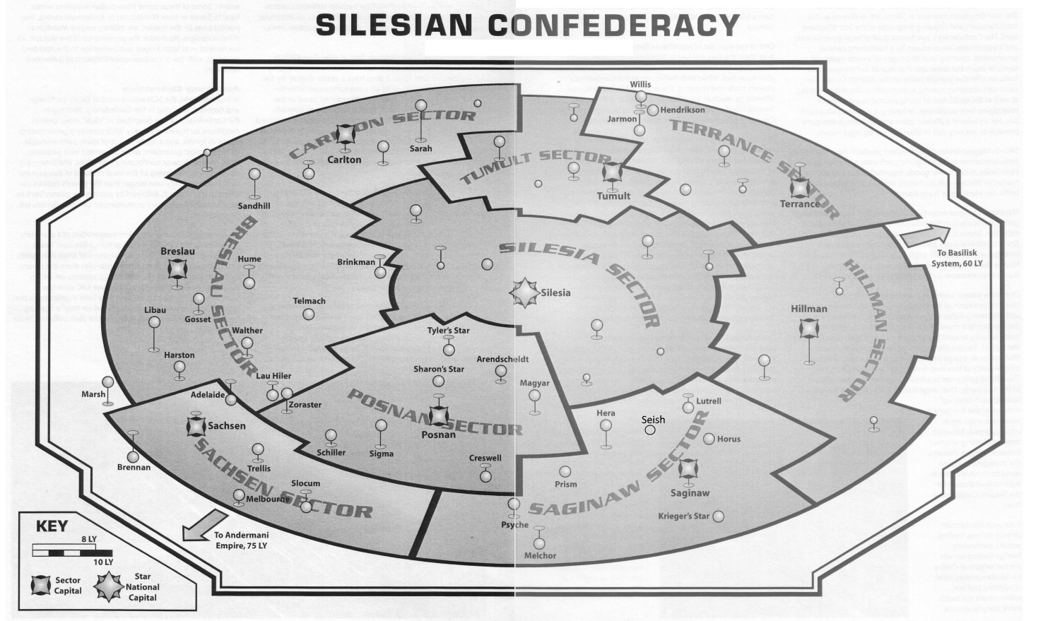 Скорее географическое, чем политическое понятие. Failed state, в котором центральное правительство фактически недееспособные, а местные власти варьируются от «с трудом справляются со своими обязанностями» до «являются прямыми пособниками пиратов». Рынки и природные ресурсы Силезии представляют большой интерес для соседей — Андерманской Империи и Звездного королевства Мантикора, но пиратство и беспорядок мешают их корпорациям обосноваться в Силезии всерьез.